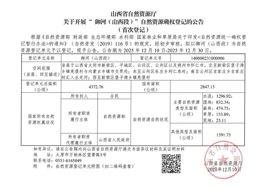山西省自然资源厅关于开展“御河(山西段)”自然资源确权登记的公告(首次登记)