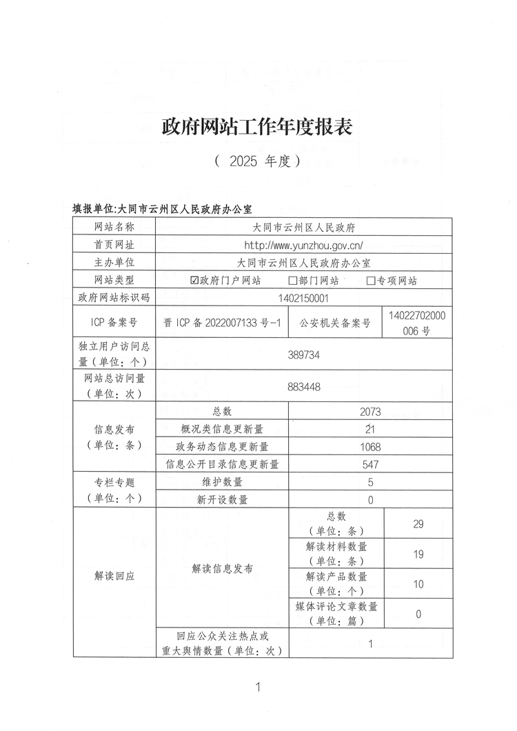 大同市云州区人民政府网站工作年度报表(2025年度).pdf